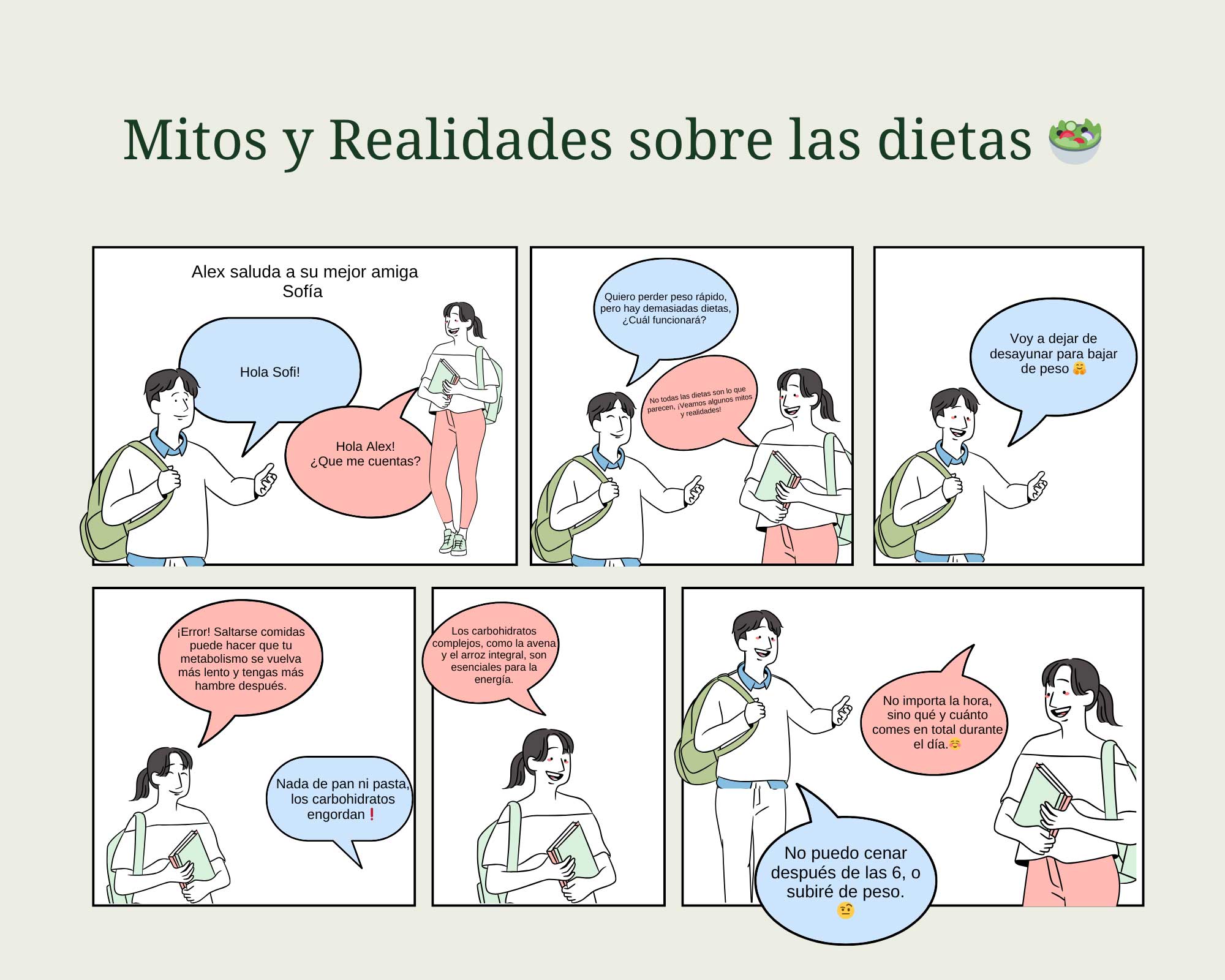 Proyecto académico desarrollado para la materia de Cultura Digital, donde exploramos los mitos y realidades más comunes sobre las dietas, aclarando creencias populares y brindando información confiable para llevar una alimentación saludable.